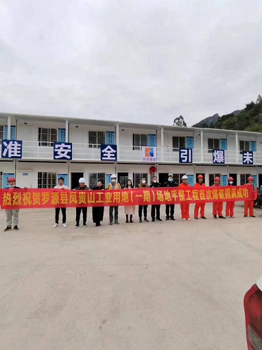该项目位于福建省罗源县松山镇,工程量达900万吨。自项目承接以来,公司领导高度重视,项目部员工精心规划,争分夺秒完成前期各项备案及审批工作。此次爆破环境相对复杂,作业位置距离厂区仅有50米,为保证爆破作业安全进行,项目部积极筹备,确保安全措施落实到位,在主管部门、业主单位、监理单位的配合下,爆破作业达到预期效果,得到地方主管部门领导充分肯定。