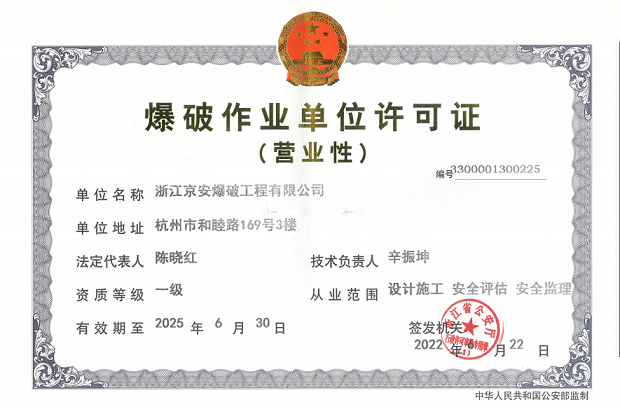 2022年爆破作业单位许可证一级(营业性)