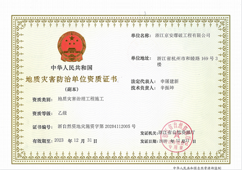 地质灾害防治单位资质证书(乙级)